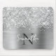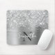 Glittery Silver Grey Glam Monogrammed Mouse Pad