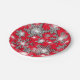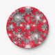 Glittery silver red festive snowflake pattern paper plate
