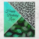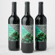 Glittery Teal Tropical Leopard Birthday Wine Label