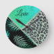 A collage of shimmery teal leopard print design joined with a vibrant teal green ombre glittery pattern where you can customize it along with tropical ferns creating trendy glam vibes.