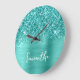 Glittery Teal Turquoise Glam White Script Name Large Clock