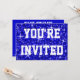 Invitation with a modern printed design featuring stars scattered over a stylised "sequin look" pattern background in shades of blue and white text. Can be used as a background for your own text, images and ideas. Please note this is a printed digital art image, it does not shine or contain real glitter or sequins.