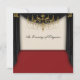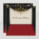 Red carpet black drapes gold chandelier school prom invitation.