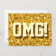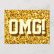 Postcard with a modern design featuring stars scattered over a stylised "sequin look" pattern background and 'OMG!' in shades of yellow and brown. Can be used as a background for your own text, images and ideas. Please note this is a printed digital art image, it does not shine or contain real glitter or sequins.