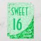 Invitation with a modern design featuring stars scattered over a stylised "sequin look" curved shape in shades of green with 'Sweet 16' 'you're invited' written in green and white. Can be used as a background for your own text, images and ideas. The text can easily be changed using the template provided or click the 'Customise It' button to make further alterations. Please note this is a printed digital art image, it does not shine or contain real glitter or sequins.