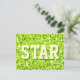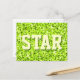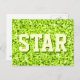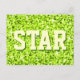 Postcard with a modern design featuring stars scattered over a stylised "sequin look" pattern background and 'STAR' in shades of lime green. Can be used as a background for your own text, images and ideas. Please note this is a printed digital art image, it does not shine or contain real glitter or sequins.