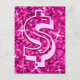 Postcard with a modern design featuring stars scattered over a stylised "sequin look" pattern background and a dollar sign '$'in shades of pink. Can be used as a background for your own text, images and ideas. Please note this is a printed digital art image, it does not shine or contain real glitter or sequins.