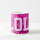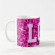 Mug with a modern printed design featuring stars scattered over a stylised "sequin look" pattern background in shades of pink. Can be used as a background for your own text, images and ideas. Please note this is a printed digital art image, it does not shine or contain real glitter or sequins.