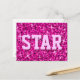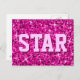 Postcard with a modern design featuring stars scattered over a stylised "sequin look" pattern background and 'STAR' in shades of pink. Can be used as a background for your own text, images and ideas. Please note this is a printed digital art image, it does not shine or contain real glitter or sequins.