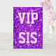 Greetings card with a modern printed design with stars scattered over a stylised "sequin look" pattern background and 'VIP SIS' written in shades of purple and lilac. A customisable design for you to personalise with your own text, images and ideas. Please note this is a printed digital art image. The product does not shine or contain real glitter or sequins.
