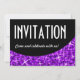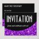 Invitation with a modern design featuring stars scattered over a stylised "sequin look" curved shape in shades of purple set against a black background with 'Invitation' 'come and celebrate with us!' written in white. Can be used as a background for your own text, images and ideas. The text can easily be changed using the template provided or click the 'Customise It' button to make further alterations. Please note this is a printed digital art image, it does not shine or contain real glitter or sequins.
