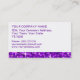 Business card with a modern design featuring stars scattered over a stylised "sequin look" pattern background in shades of purple, and purple text on a white background Please note this is a printed digital art image, it does not shine or contain real glitter or sequins.