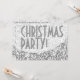 Invitation with a modern design featuring stars scattered over a stylised "sequin look" curved shape and 'Christmas Party!' in shades of silver grey. Can be used as a background for your own text, images and ideas. The text can easily be changed using the template provided or click the 'Customise It' button to make further alterations. Please note this is a printed digital art image, it does not shine or contain real glitter or sequins.