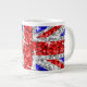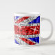 Fly the UK flag with this fun Union Jack design featuring stars scattered over a stylised "sequin look" pattern background. Mug with a red, white, silver grey and blue customisable design for you to personalise with your own text, pictures and ideas. Please note this is a printed digital art image. The product does not shine or contain real glitter or sequins.