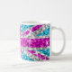 Fly the UK flag with a twist. A fun Union Jack design featuring stars scattered over a stylised "sequin look" pattern background. Mug with a pink, white, silver grey and blue customisable design for you to personalise with your own text, pictures and ideas. Please note this is a printed digital art image, it does not shine or contain real glitter or sequins.