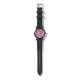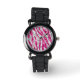 Watch with a modern printed design featuring stars scattered over a stylised "sequin look" zebra stripe pattern background. A customisable design in shades of pink and silver grey for you to personalise with your own text, pictures and ideas. Please note this is a printed digital art image, it does not shine or contain real glitter or sequins.