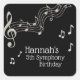 Glitzy Black & White Musical Notes Birthday Square Sticker