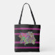 Colourful fuchsia glitter with black stripes and colourful flower design personalised tote bag.