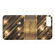 Glitzy and glamourous monogram smartphone case with sparkling lights, stripes. and gold coloured monogram emblem, all digitally printed on the cover in a graphic design that will decorate your cellphone in a style as unique as you are.