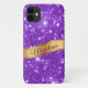 This glittzy and glitterific purple iPhone case is the perfect way to show off your personal style. The cover is covered in a luxurious layer of purple glitter, (please note, it's printed on as part of the design) and your name is displayed in a stylish gold banner. The case is made of high-quality materials that will protect your phone from bumps and scratches. You'll definitely make a sparkling impression with this gorgeous, glittering phone case. Perfect for purple lovers, or just for people who love to shine!