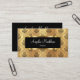 Classy and glitzy real estate business card design created with an elegant floral damask pattern overlaid on simulated gold metallic artwork background with your name or company featured on the front. Designed for a Realtor, Broker, property manager, or realty services.