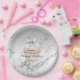 Glitzy Silver White Cupcake Bow Birthday Paper Plate