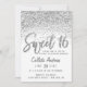 Glitzy White Silver Scattered Glitter Sweet 16 Invitation