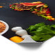 Global Cuisines Map: Top View of World Map Created with Food Ingredients and Vegetables. Explore a diverse range of global cuisines with this top view of a world map crafted from various food