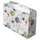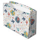 Vibrant seamless pattern gift bag featuring aeroplanes, globes, flight paths, stars, and travel-inspired icons in a playful aviation style. Ideal for travelers, aviation enthusiasts, frequent flyers, and anyone who loves global adventure aesthetics.