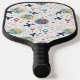 Vibrant seamless pattern pickleball paddle featuring aeroplanes, globes, flight paths, stars, and travel-inspired icons in a playful aviation style. Ideal for travelers, aviation enthusiasts, frequent flyers, and anyone who loves global adventure aesthetics.