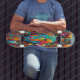 This design showcases the joy, love, and harmony of the global skateboarding community, with a bright and joyful palette that emphasizes global unity. Vibrant representations of skateboarders, hearts, and symbols of peace connect cultures and continents, highlighting the diversity and collective pursuit within the skate community.