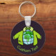 Cartoon illustration of earth globe protected by green jacket. Custom background colour. Custom text on both sides.
