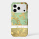 Very stylish teal and gold marble look cell cover with an editable text.. You can use one initial or several, a name or even a word or short saying.
