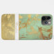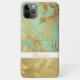 Very stylish teal and gold marble look cell cover with an editable text.. You can use one initial or several, a name or even a word or short saying.