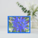 This postcard features a beautiful and highly detailed photo of a bunch of glory of the snow (chionodoxa) flowers, taken using macro photography, resulting in a stunning image. The photograph has been artificially coloured resulting in fluorescent blue flowers and a pretty green leafy background. A blue frame around the outside of the photo completes the design.