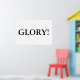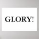 The poster is horizontal and has the word "GLORY!" in the middle in black and white.