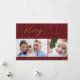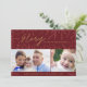 This beautiful 2-photo holiday card features a faint boughs and leaves and faux gold foil over a dark burgundy background.