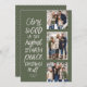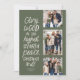 Glory to God in the highest! This religious Christmas card features three photos along with the Bible verse from Luke 2:14 in a handwritten style. This three photo Christian Christmas card is perfect for sending meaningful holiday greetings. The type on the front is off-white on a green background, and the back is a matching green with off-white dots. There is room for two square photos and one vertical. This original card by Lea Delaveris Design is part of a collection and can be found in other colours as well. Also available as a digital Christmas card download.