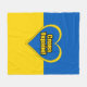 Sherpa blanket with the flag of Ukraine, heart in the Ukrainian colours, and text saying "Glory to Ukraine" in Ukrainian