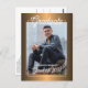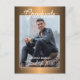 Unique and trendy congratulations graduate announcement and celebration party invitation card, with a classic faux shiny brass copper gold gradient coloured background. With room to customise or personalise with a photo, the name of the graduate, class graduation year, high school, future college or university name, and celebration party event information. Let the family, friends and neighbours know there is a happy graduate ready to conquer the world, and invite everybody to come celebrate the happy event with you!