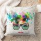 Throw pillow featuring a lovely glossy woman face with sunglasses with flowers and butterflies in the hair illustration on a transparent background (white used in sample) or custom background colour.
