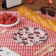 Glossy Red Cherries Pink Retro Party Paper Plate