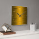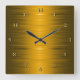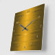 This shiny square clock in shades of Glossy Gold will brighten the wall of any room it is displayed in.