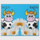 Glossy Wrapping Paper, Cow Floral White Daisy Blue Paper