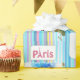 Glossy Wrapping Paper, Paris France Blue Stripe Paper