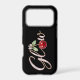 Elegant phone case with “Glow” typography and a jewel-style red cherry for a bold, fashionable look.