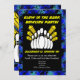 Fun, bright and festive glow in the dark bowling birthday party invitation features black and white pins, neon yellow stars with neon blue and black backround and paint spatter design. Great for a general boys party, bowling team or birthday for any age. Add the guest of honour's name,event details and party title on the front, and Customise all the text for your party!