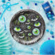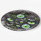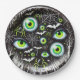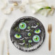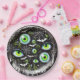 design for the glow-in-the-dark Halloween-themed paper plate. It features eerie glowing elements such as spooky eyes, spider webs, and bats, perfect for setting a creepy atmosphere at Halloween parties.