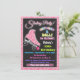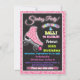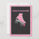 Super fun Glow in the dark Roller Skating birthday party invitations. Features a glowing pink faux sequin roller skate and boarder and fun typography. Hand drawn illustration by McBooboo. These do not glow in the dark.