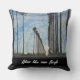A pillow adorned with a graphically stunning watercolor painting of rows of palm trees silhouetted against an artistic sky inspired by Vincent van Gogh's "The Starry Night."
